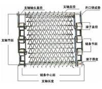 链条标号 节距P 链杆节距P1 链杆直径D 网丝直径D1 网带螺距L 网带节距J (P) (p) (p1) (D) (D1) (L) (J) C2042 25.4mm 25.4×*节 5~8mm 1.0~1.6mm 3~19mm 6.35~25.4mm C2052 31.75mm 31.75×*节 6~10mm 1.2~2.0mm 5~21mm 6.35~31.75mm C2062 38.1mm 38.1×*节 8~12mm 1.5~2.0mm 8~21mm 6.35~38.1mm C2082 50.8mm 50.8×*节 10~12mm 1.5~3.0mm 10.5~21mm 12.7~50.8mm C2160 101.6mm 101.6×*节 10~14mm 1.5~4.0mm 10.5~27mm 12.7~50.8mm